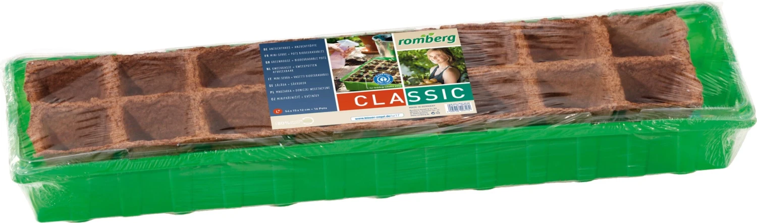 1 Schale, 1 Deckel, 16 Anzuchttöpfe á 6 x 6 cm