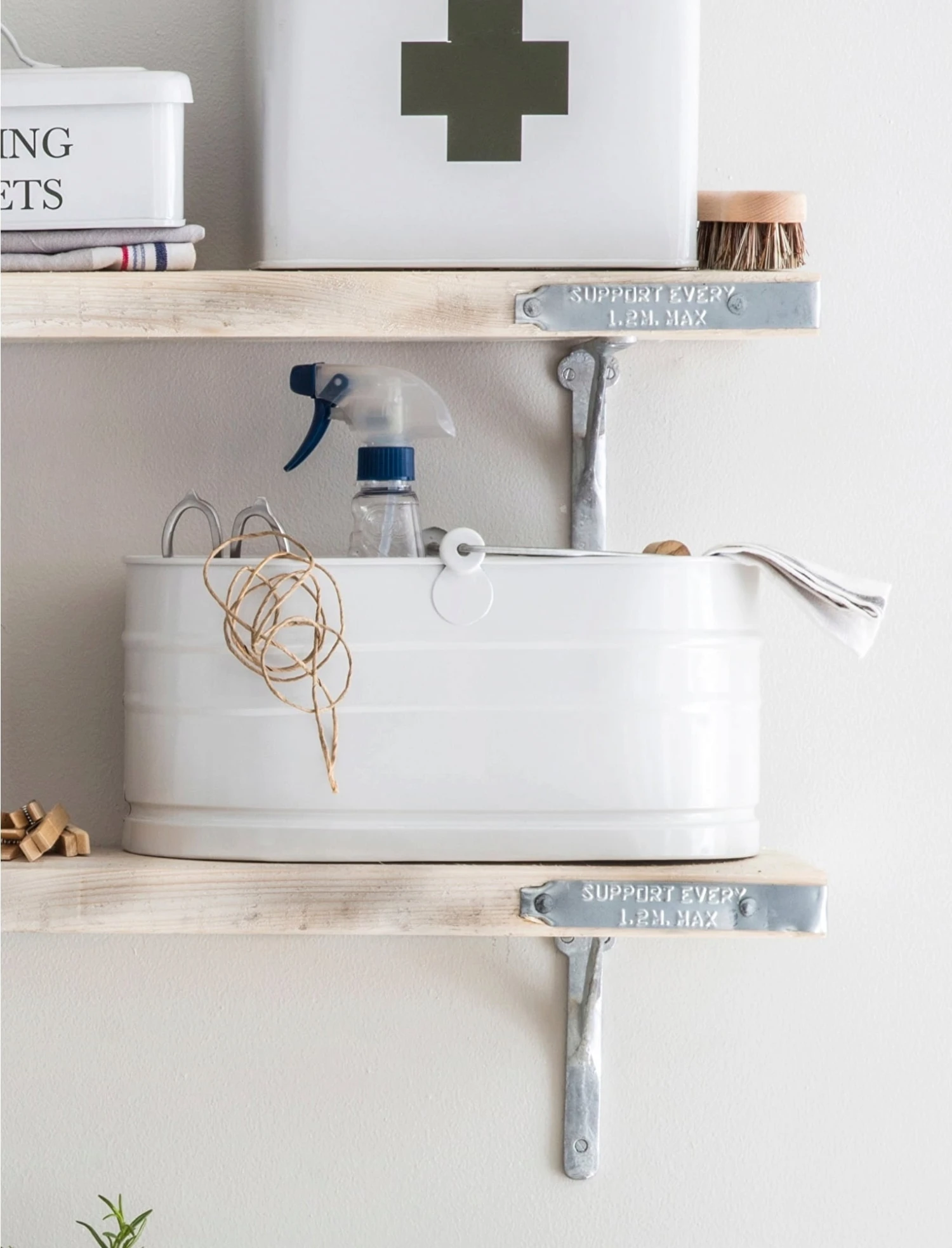 In dieser eleganten Box sind all Ihre Haushaltsutensilien nicht nur sicher, sondern auch stilvoll aufgehoben. Egal, ob in der Küche für Schwämmchen und Co., im Bad für Reinigungsprodukte oder im Garten für Werkzeug, in dieser tollen Box findet so gut wie alles seinen Platz. Und dank der Fertigung aus hochwertigem, pulverbeschichtetem Metall ist diese Box auch robust genug für alle Einsatzzwecke. Der praktische Metallhenkel mit Holzgriff ermöglicht die einfache Mitnahme von Zimmer zu Zimmer oder auch in den Garten, sodass Sie alle Ihre wichtigen Utensilien immer griffbereit haben.
