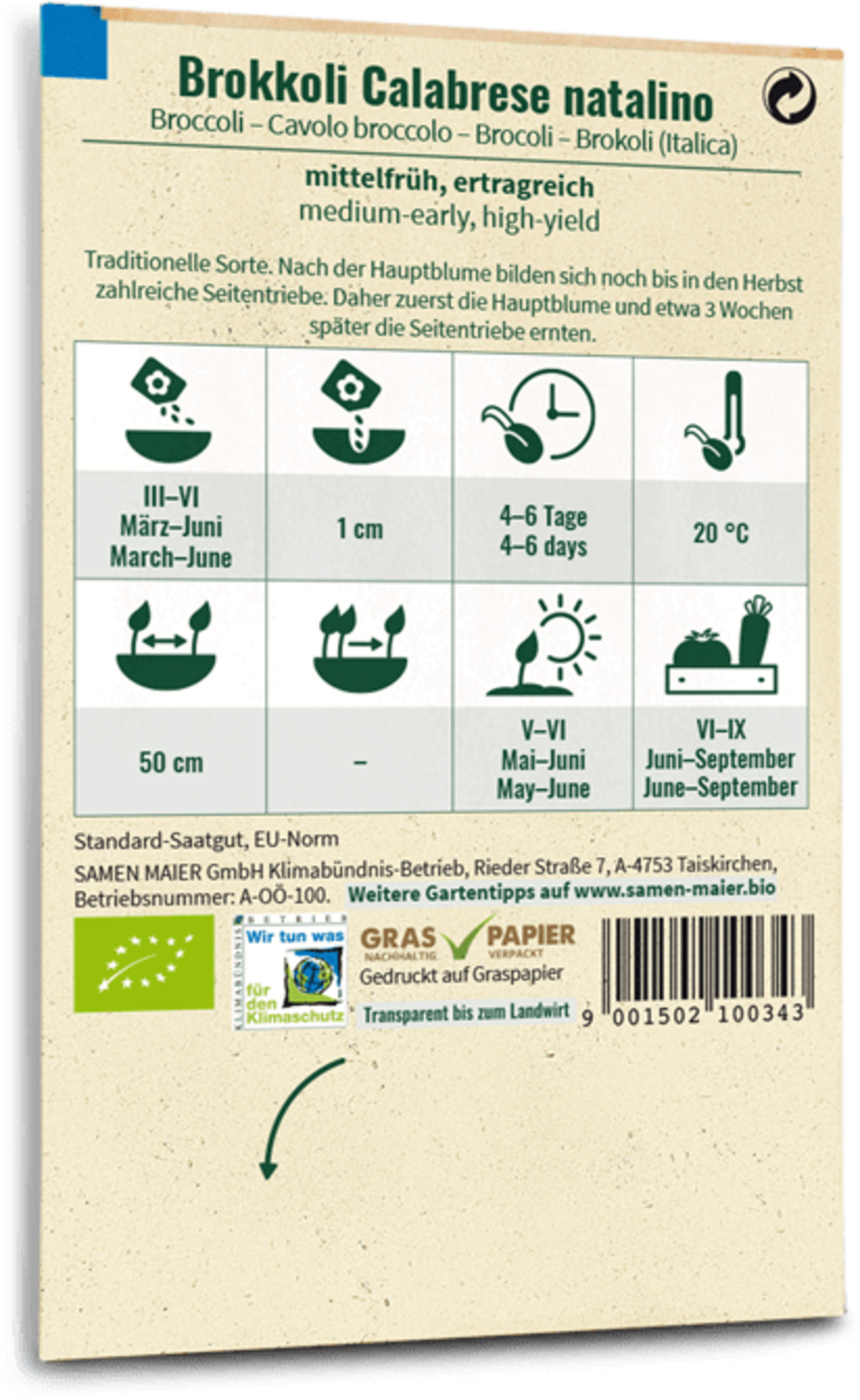 Diese traditionelle Brokkoli-Sorte kann bis in den Herbst hinein geerntet werden, denn sie bildet nach der Hauptblume noch zahlreiche Seitentriebe.