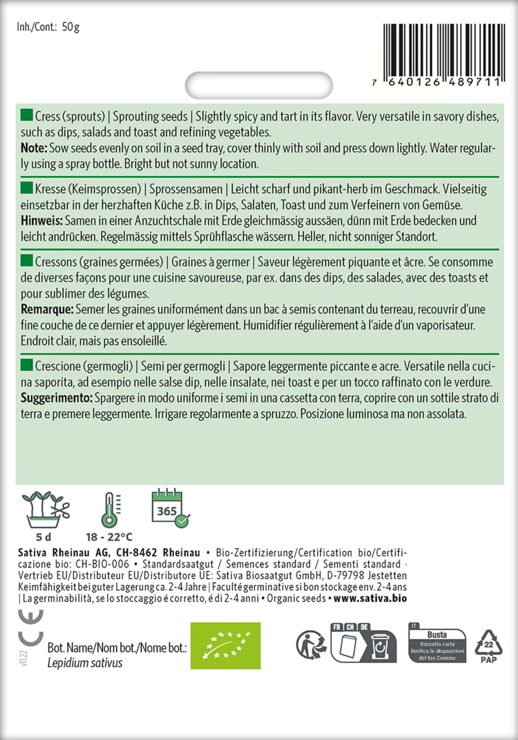 Die beliebte Kresse kann ganz einfach selbst kultiviert werden. Ihr Geschmack kann als pikant-herb und leicht scharf beschrieben werden. Ganz besonders eignet sie sich für die Verfeinerung von Dips, Salaten oder belegten Broten.