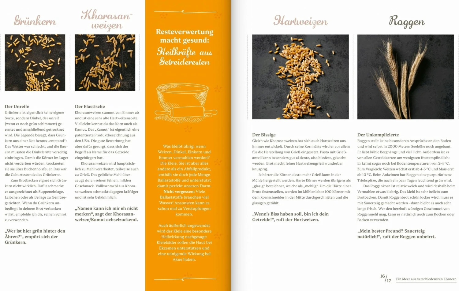 - Umfangreiches Wissen zu alten Getreidesorten wie Amarant, Emmer, Dinkel, usw.