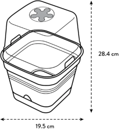 Mit diesem quadratischen Anzuchttopf aus recyceltem Kunststoff gelingt die Anzucht von Obst-, Gemüse- und Kräuterpflanzen ganz einfach, denn er bietet zarten Pflänzchen die optimalen Wachstumsbedingung. Dank integriertem Wasserreservoir haben deine Pflanzen immer ausreichend Wasser zur Verfügung und du musst dir nicht dauernd Gedanken ums Gießen machen. Der inkludierte Anzuchtkasten schützt deine Pflanzen vor direkter Sonneneinstrahlung sowie Insekten und Vögeln sorgt und zudem für ein optimales Wachstumsklima. So kannst du dich schon bald über kräftige selbst gezogene Pflanzen freuen.
