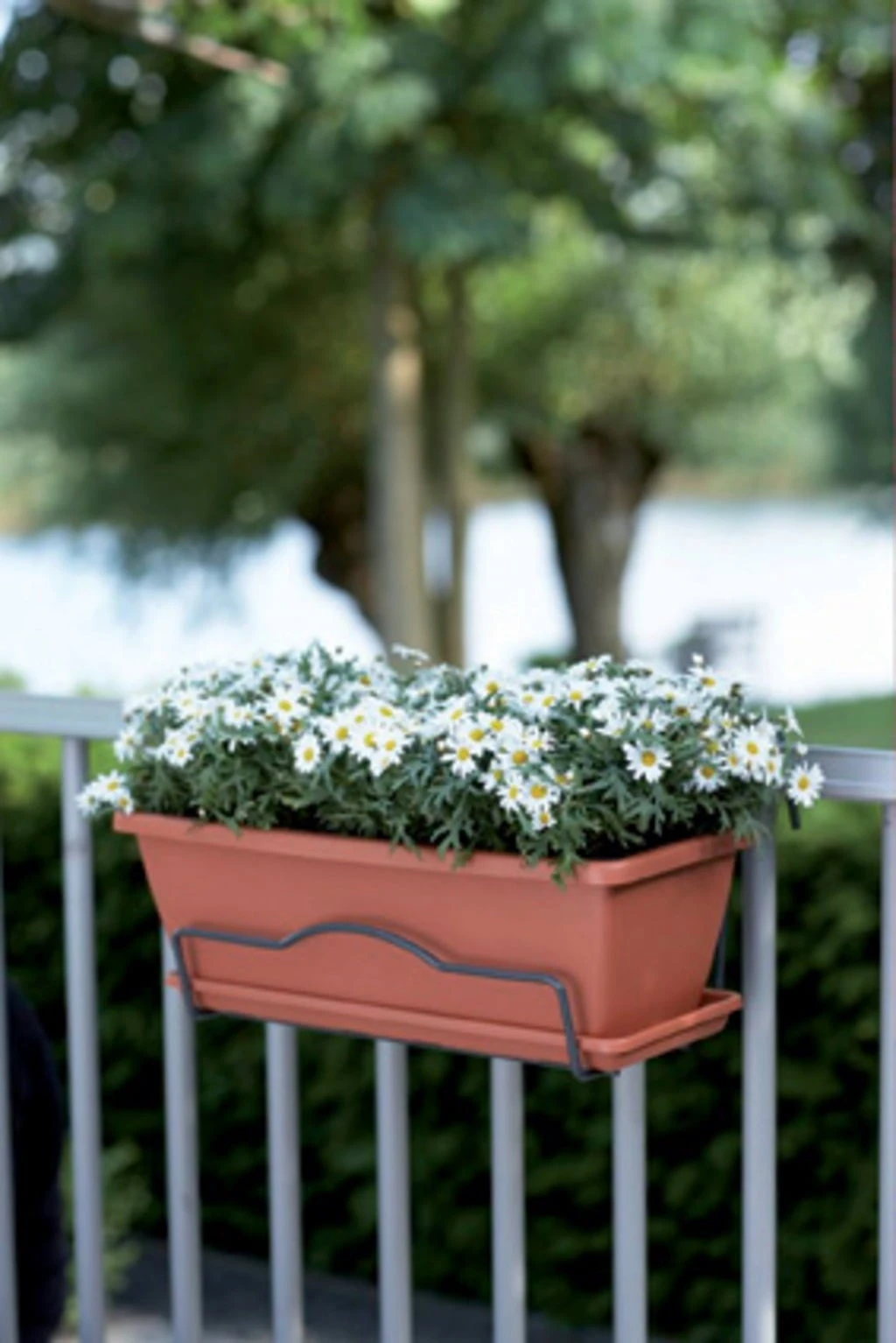 Diese Halterung aus stabilem Metall ist das perfekte Zubehör zum barcelona Balkonkasten 50 cm. Sie ermöglicht die einfache Anbringung der Kästen an deinem Balkongeländer und sorgt dafür, dass diese stets fest und gerade am Geländer hängen.