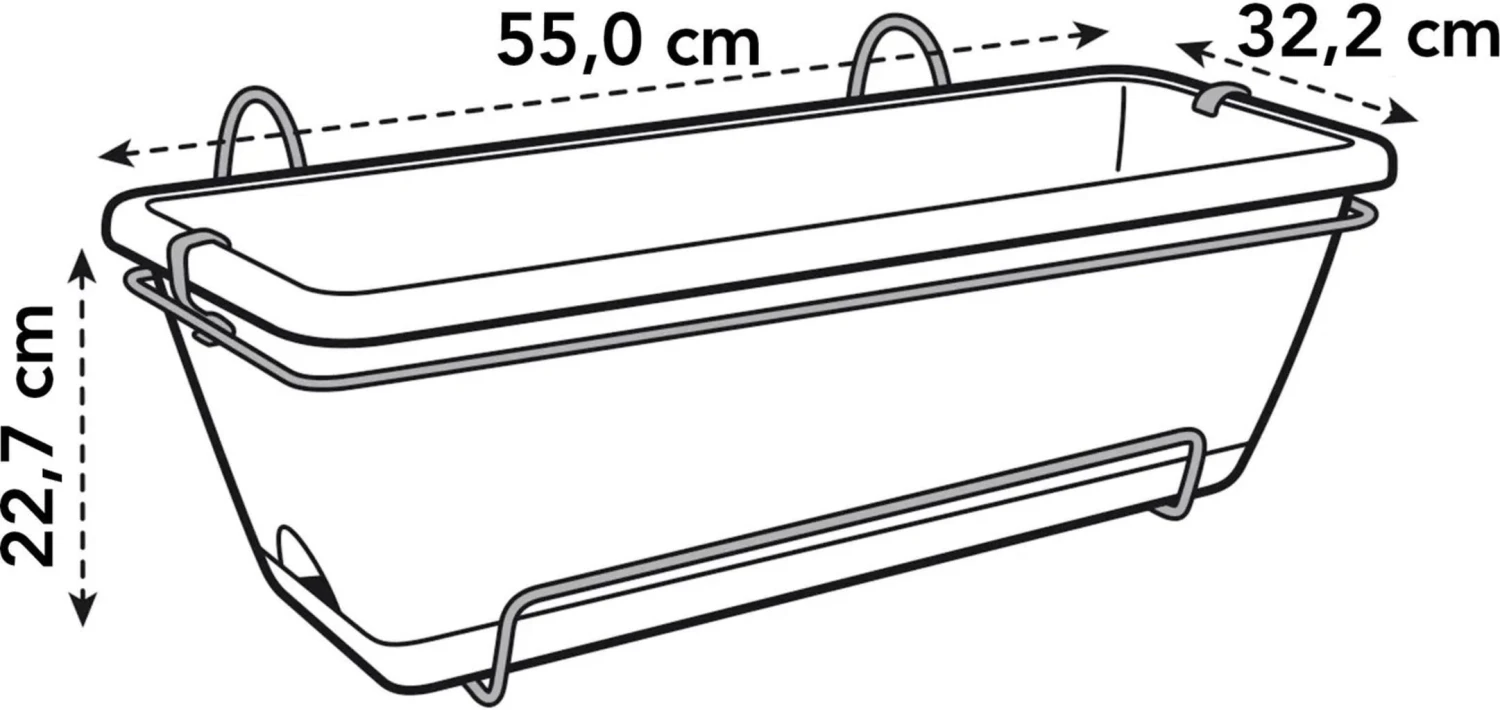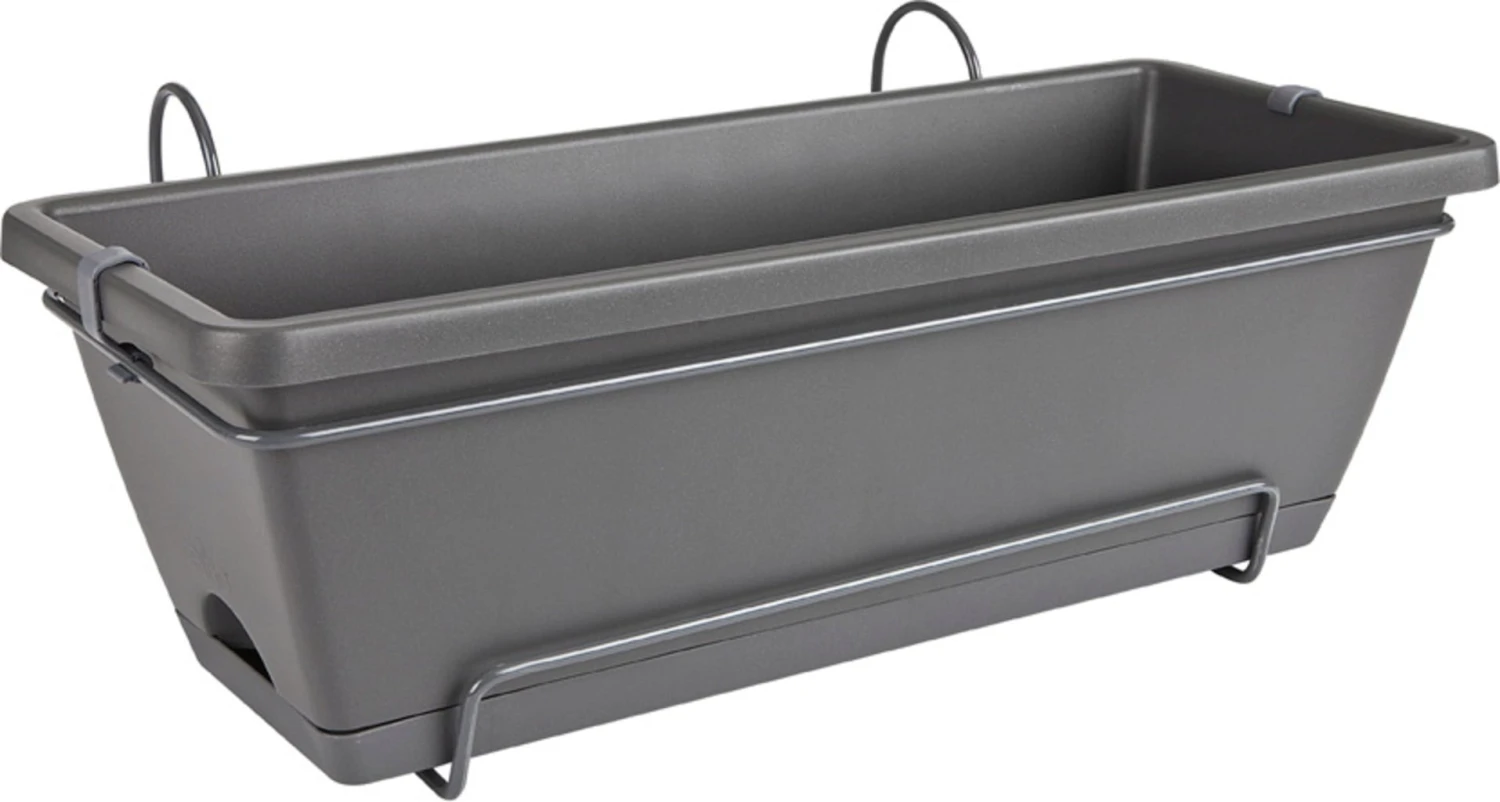 - Set aus Pflanzkasten, Untersetzer, Einhängegestell und Befestigungsclips