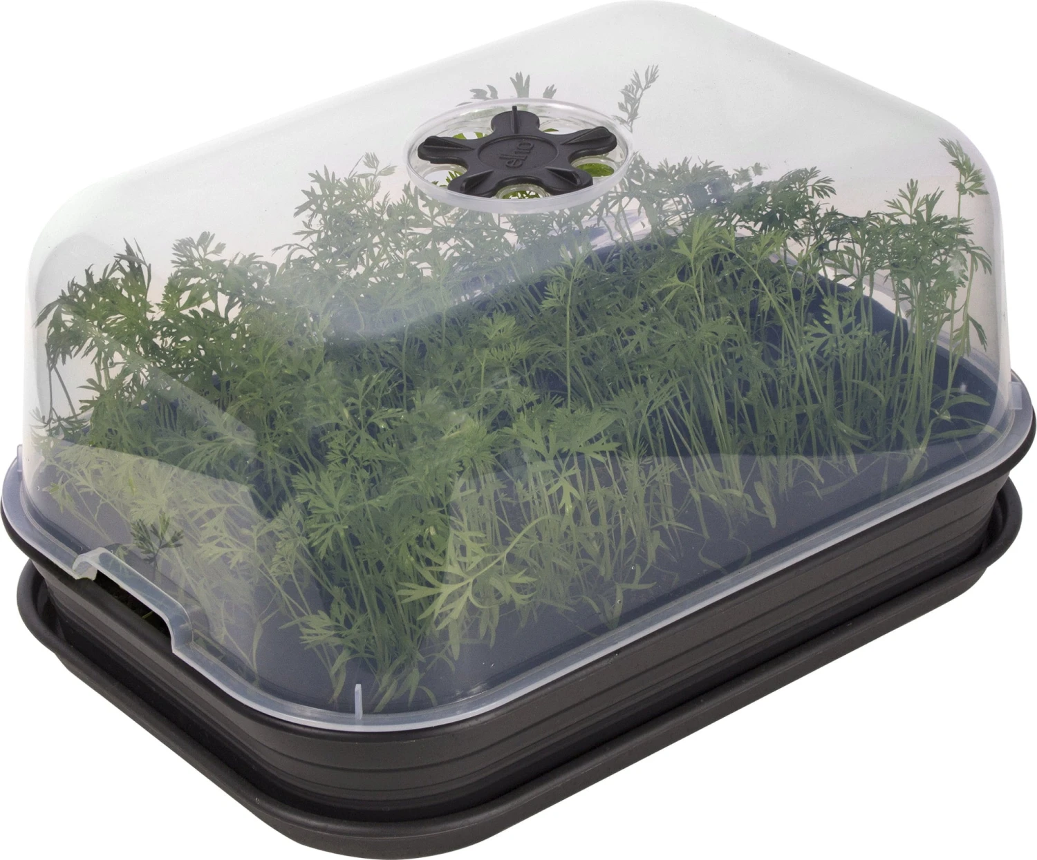 Mit der Anzuchthaube ist eine einfache Temperaturkontrolle dank praktischem Rotorschieber möglich. Außerdem sorgt sie für perfekte Luftzirkulation welche den Wachstumsprozess der Pflanze fördert. Frostbeständig bis -40°C.