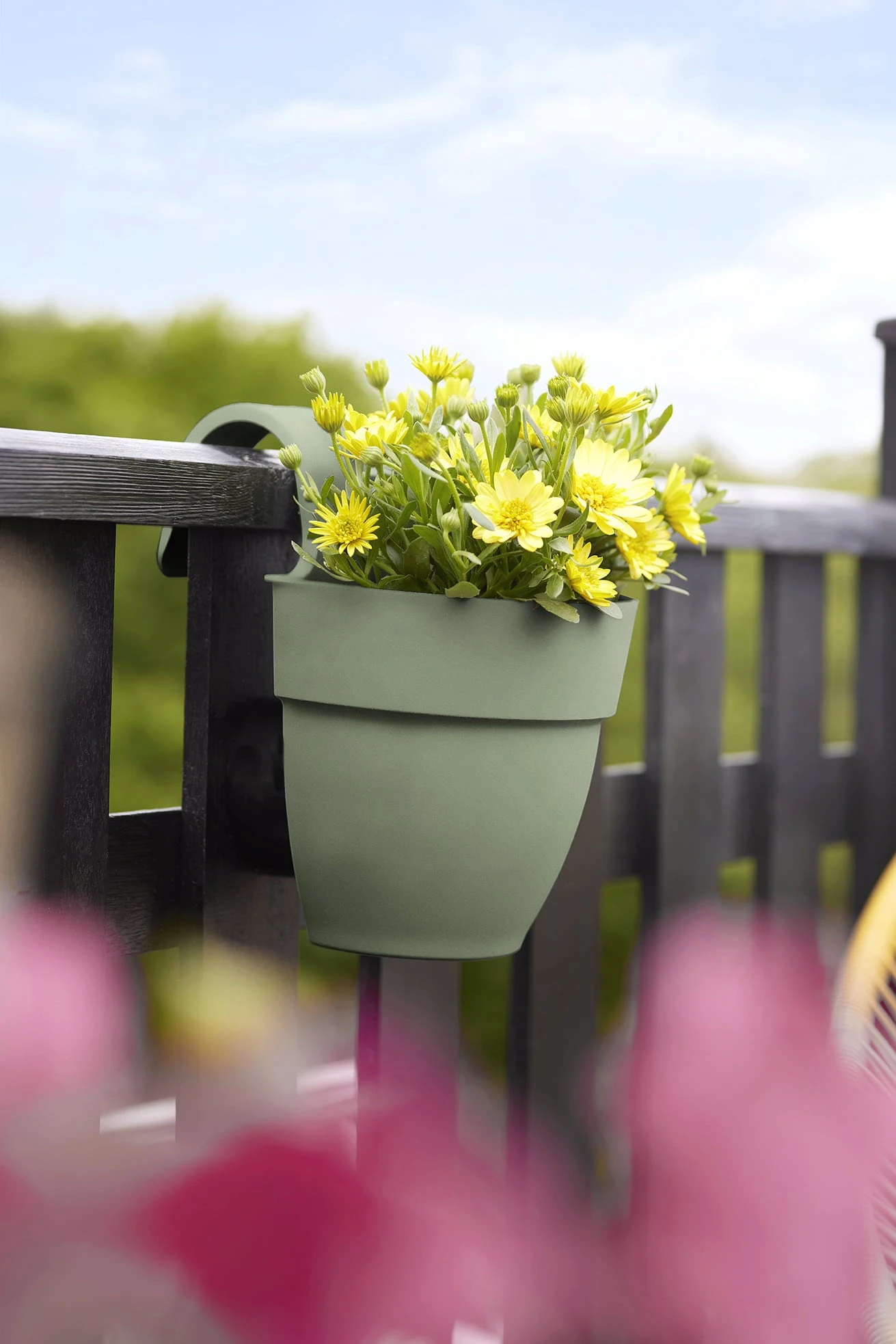Dieser stylishe Hängeblumentopf ist eine wundervoll einfache Möglichkeit, deinen Balkon zu begrünen und eine tolle Ergänzung zu klassischen Balkonkästen. Seine Aufhängung ermöglicht es, dein Balkongeländer an jeder beliebigen Stelle mit Blumen zu schmücken und so zu einem echten Hingucker zu machen. Mit seinen weichen, runden Formen fügt sich dieser Blumentopf harmonisch in deinen Außenbereich ein und bringt deine Pflanzen auf besondere Weise zur Geltung.
