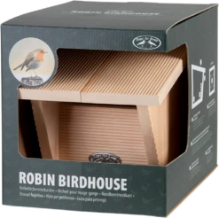 Der aus Erlenholz gefertigte Nistkasten ist der ideale Ort für Rotkehlchen, um ihren Nachwuchs aufzuziehen sowie im Winter einen sicheren Unterschlupf zu finden. Mit seinem schrägen Dach und den dicken Wänden schützt der Nistkasten perfekt vor Regen, Wind und frostigen Temperaturen. Im Sommer sorgen Lüftungsöffnungen dafür, dass es zu keinem Hitzestau kommt. Auch an die Jungvögel wurde gedacht, denn mit den angerauten Innenseiten und den Rillen an der Vorderseite können diese leicht aus dem Kasten herausklettern.
