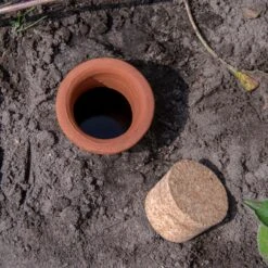 Der Olla kann mit dem mitgelieferten Korken verschlossen werden, sodass die Verdunstung von Wasser verhindert wird.