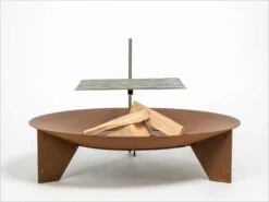 Als Zubehör empfehlen wir einen Grillrost aus Edelstahl. Die entsprechende Halterung ist an der Feuerstelle vormontiert, der Rost wird bei Bedarf einfach eingesteckt. Er ist schwenkbar und kann stufenlos in der Höhe verstellt werden.