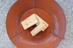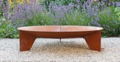 Wie ein Kunstobjekt im Garten kann die Feuerschale „Aura“ das ganze Jahr über draußen stehen, denn erst die Witterungseinflüsse schaffen eine individuelle und großartige Rostoptik auf der anfangs noch stahlgrauen Oberfläche.