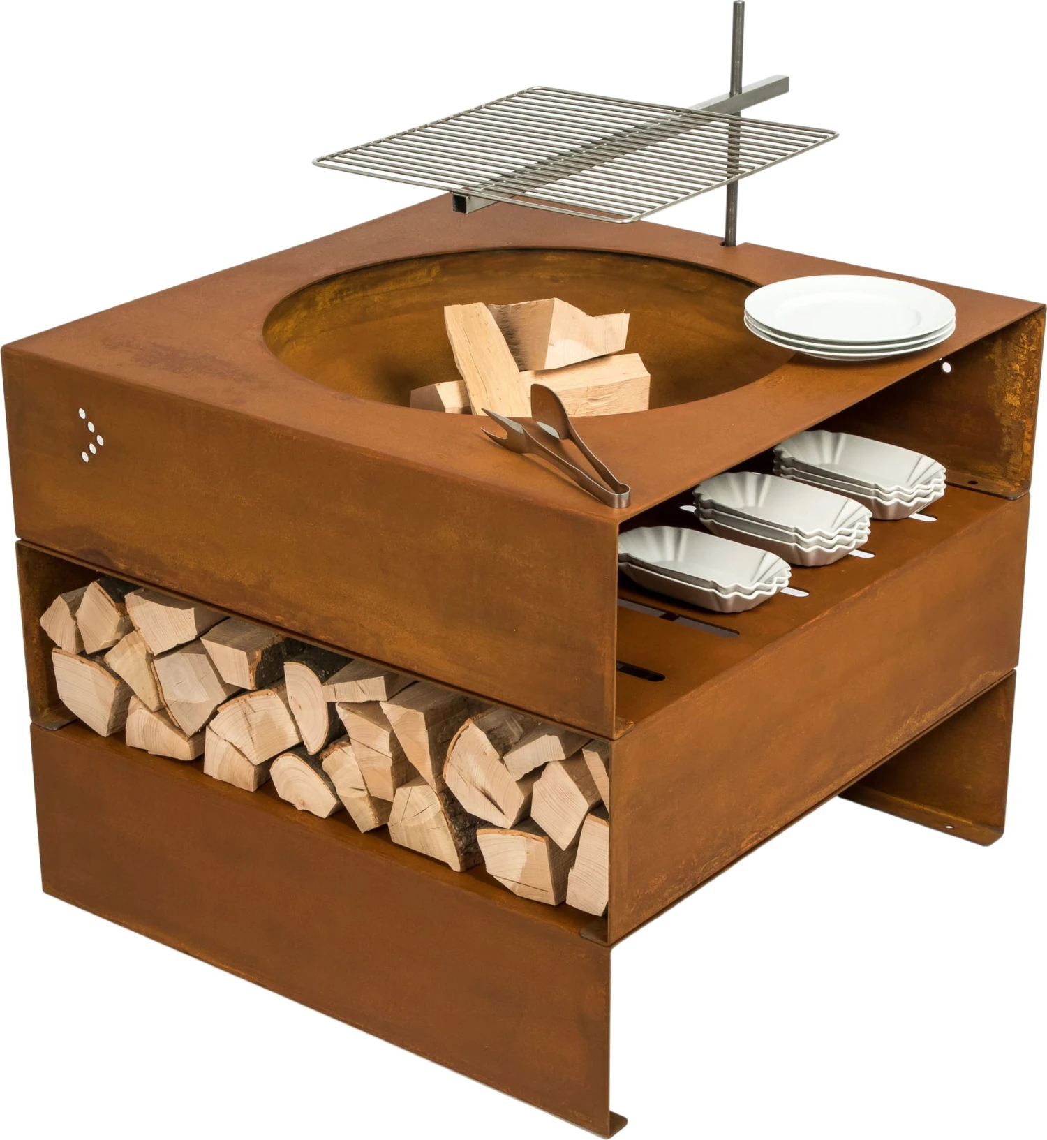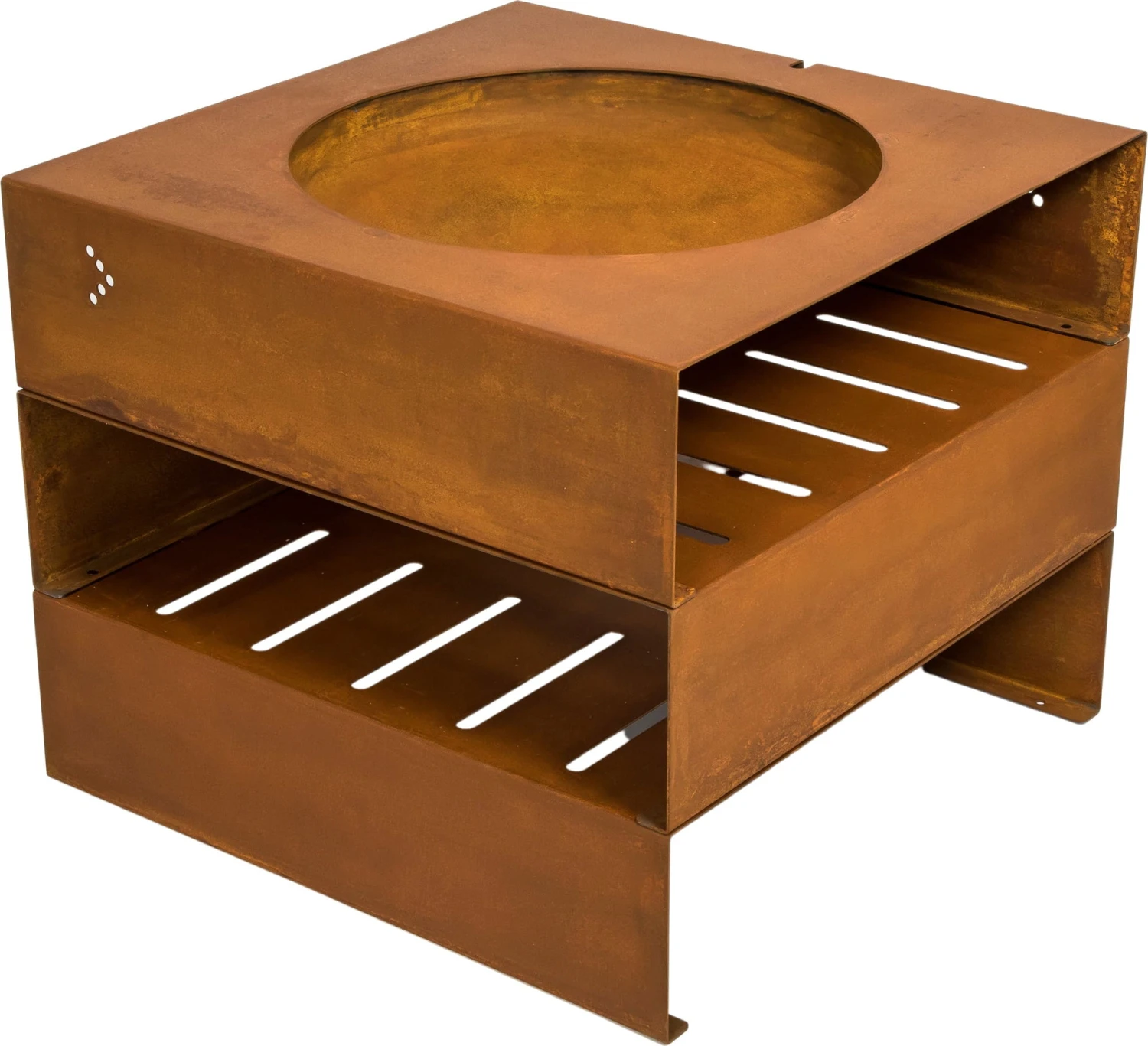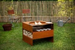 Light-my-fire.great-cube wurde aus 3 mm dicken wetterfesten Stahl gefertigt, somit kann sie das ganze Jahr über draußen stehen bleiben. Durch die Witterungseinflüsse entwickelt die Feuerstelle bzw. der Grill mit der Zeit, auf der anfangs noch stahlgrauen Oberfläche, eine einzigartige Rostoptik. Ein absoluter Hingucker an lauen Abenden im Garten!
