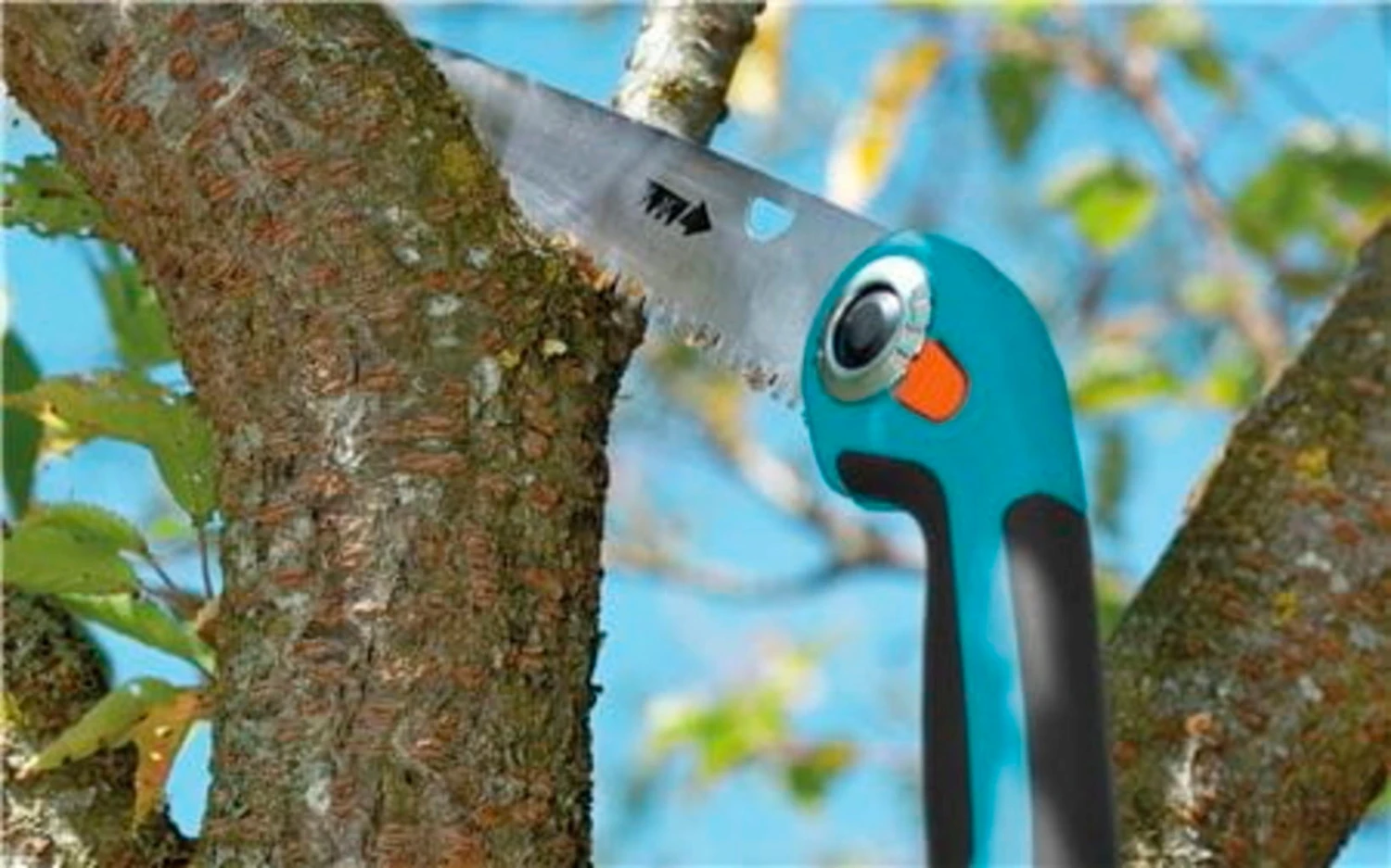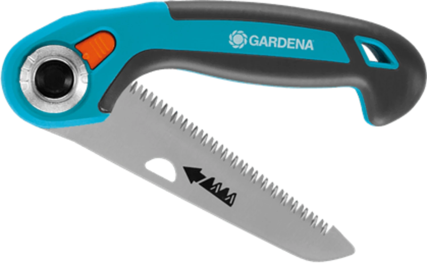 Die Garten-Klappsäge 135 P von GARDENA ist ein handlicher Allrounder für kleinere Sägearbeiten im Garten. Mit dem hartverchromten und rostfreiem Sägeblatt sind auch dicke Äste kein Problem. Geringer Krafteinsatz, schnelle Ergebnisse und ein präzises Schnittbild zeichnen diese Säge aus. Mit der Feststelltaste lässt sie sich wackelfrei in drei unterschiedliche Positionen einstellen und nach dem Gebrauch platzsparend und sicher zusammenfalten.