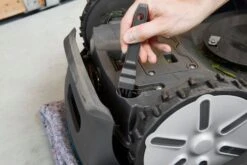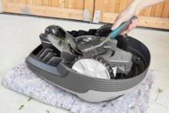 Mit dem Schleifpad kannst du die Kontakte vom Mäher von Verschmutzungen befreien, und mit den zwei unterschiedlichen Bürsten kannst du die Unterseite des Geräts reinigen, getrocknetes Gras und Schmutz werden einfach entfernt. Der Pflegespray ist optimal für die Kunststoffteile und mit dem speziellen Schraubenzieher ist es dir möglich, die Messer selbst zu wechseln. Und das alles ist gut verpackt in einer praktischen Kunststoffbox mit Deckel, die vor Staub und Verschmutzungen schützt und sich gut verstauen lässt.