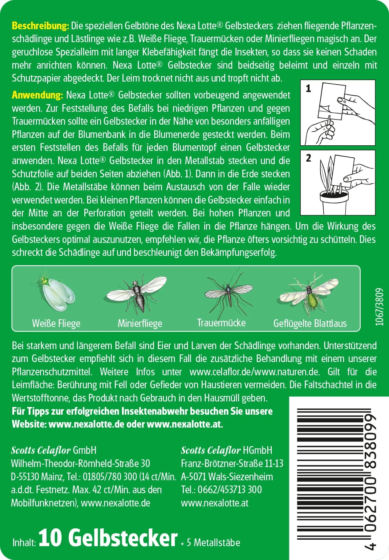 - Beim ersten Feststellen des Befalls für jeden Blumentopf einen Gelbstecker anwenden