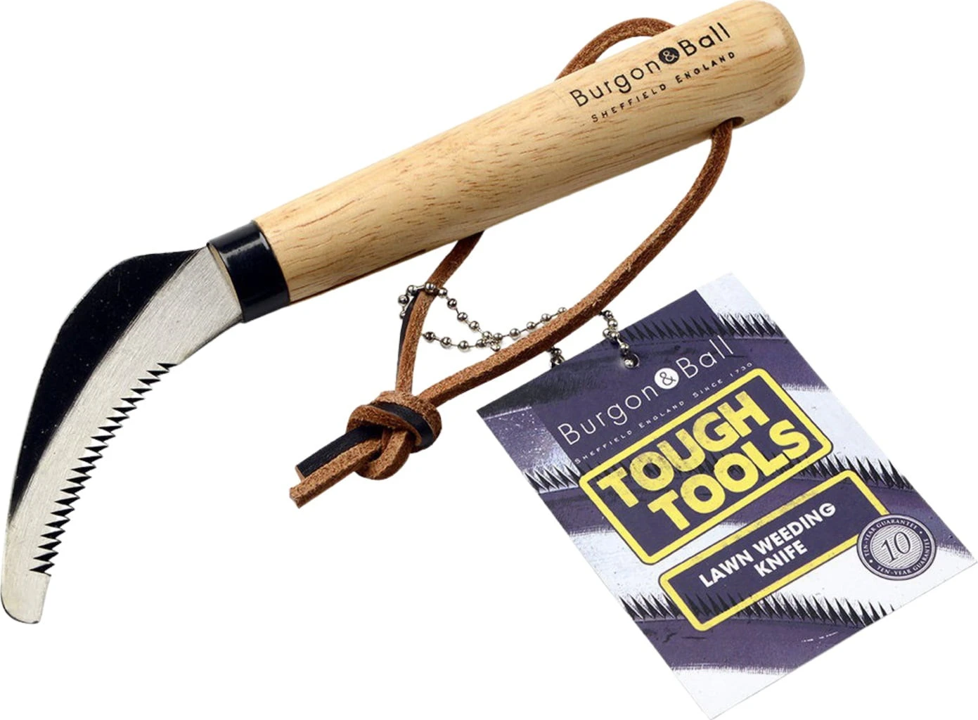 Dieses Messer eignet sich ideal für das Unkrautjäten in Rasenflächen. Seine Klinge aus geschmiedetem Carbon-Stahl ist besonders hart und scharf – somit hat Unkraut keine Chance. Die Zähne der Klinge sorgen dafür, dass das Messer problemlos durch Böden, Gras sowie Wurzeln schneide und Unkraut komplett in Sekundenschnelle entfernt.