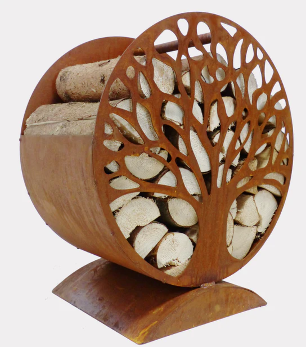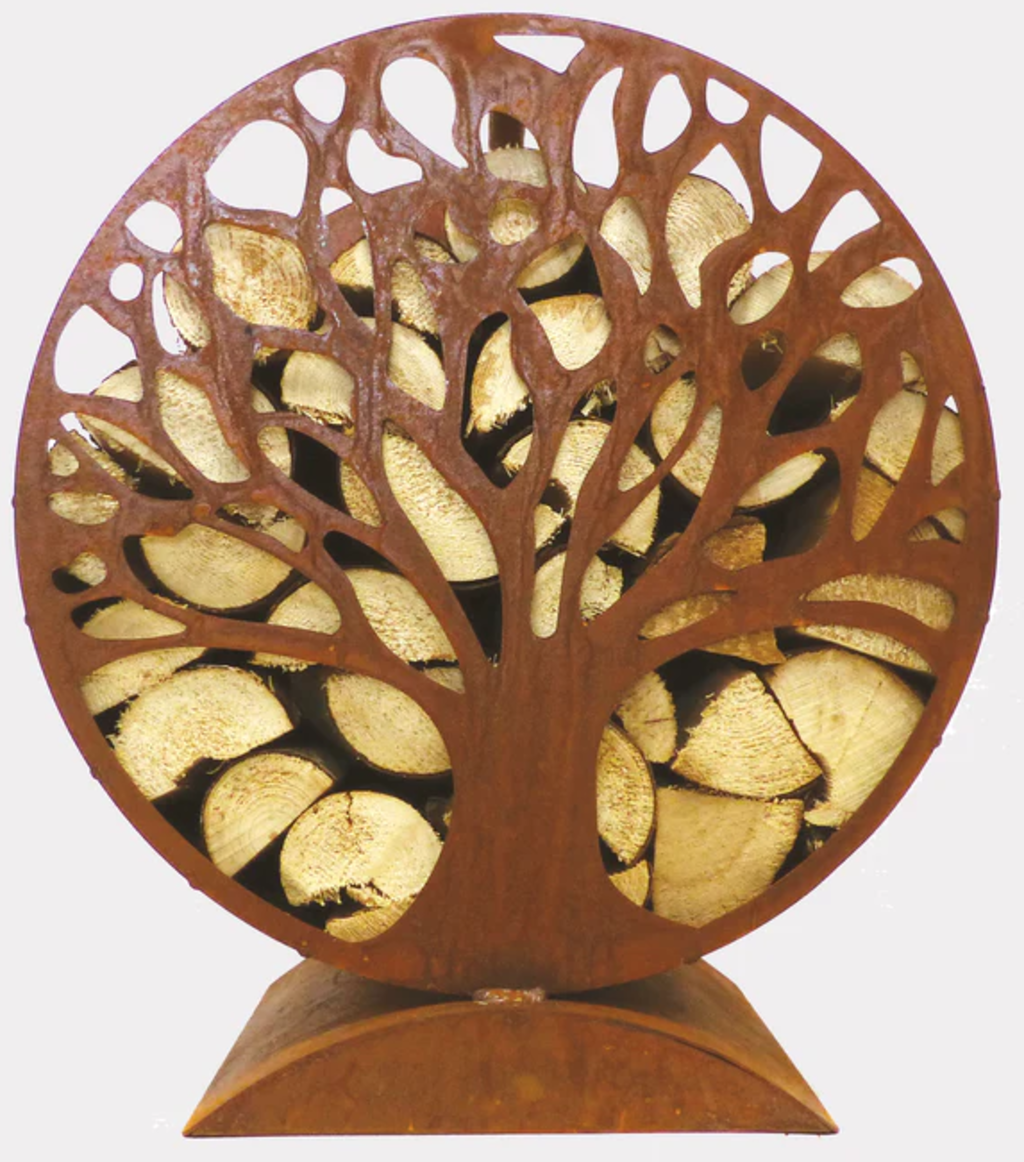 Dieses Regal mit elegantem Edelrostfinish und Lebensbaumdesign ist eine einzigartig dekorative Aufbewahrungslösung für Feuerholz. So ist es nicht nur überaus praktisch, sondern setzt auch einen unvergleichlich stilvollen Akzent.