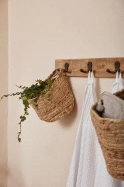 Der Jute-Korb mit Henkel ist die ideale Lösung für stilvolle Organisation und Ordnung in deinem Zuhause. Mit dem Henkel kannst du den Korb unkompliziert tragen und umplatzieren, aber auch einfach und dekorativ an einem Haken hängen. Ein echter Hingucker für Küche, Bad, Flur oder Wohnzimmer.