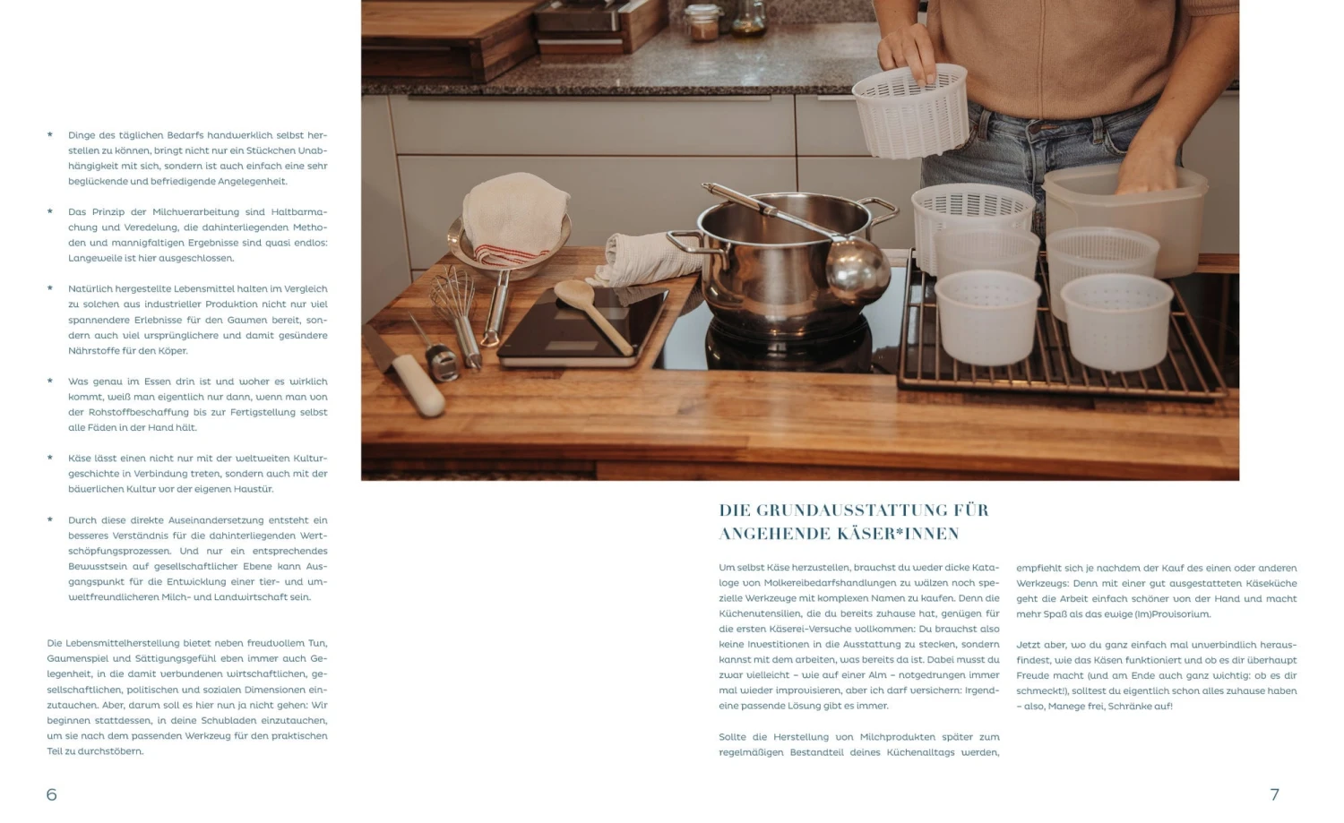 Ob mild oder würzig, ob hart oder cremig, Käse ist einfach immer köstlich, Wenn auch du dich zu den Käseliebhaber:innen zählst, ist dieses aufwendig gestaltete Buch genau das richtige für dich. Hier erfährst du von Autorin Marlene Kelnreiter nicht nur alles über die Käseproduktion, sondern auch, wie du zahlreiche andere Milchprodukte selbst herstellt. Und dafür musst du nicht auf einer Alm sein und benötigst auch kein spezielles Werkzeug. Deine Küche reicht völlig, um in den siebenten Käsehimmel emporzusteigen und zu Hause köstliche Käsesorten, Butter, Ayran und vieles mehr selbst herzustellen.