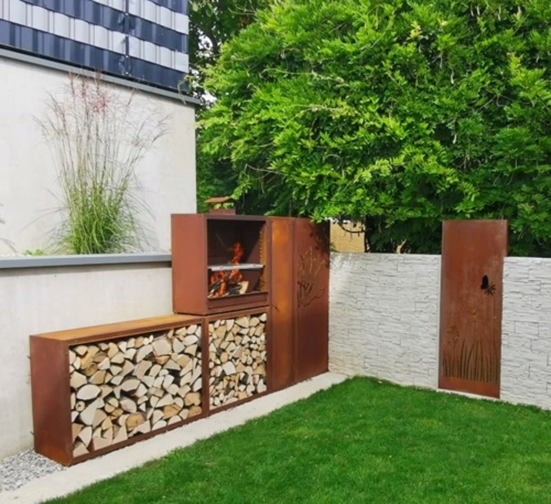 Dieses robuste Edelrost-Kaminholzregal ist perfekt für den Außenbereich, kann aber auch im Innenbereich verwendet werden. Es begeistert mit jeder Menge Platz für Brennholz und sieht dabei auch noch überaus dekorativ aus. Besonders toll: Du kannst mehrere Kaminholzregale wie in einem Baukastensystem miteinander kombinieren.