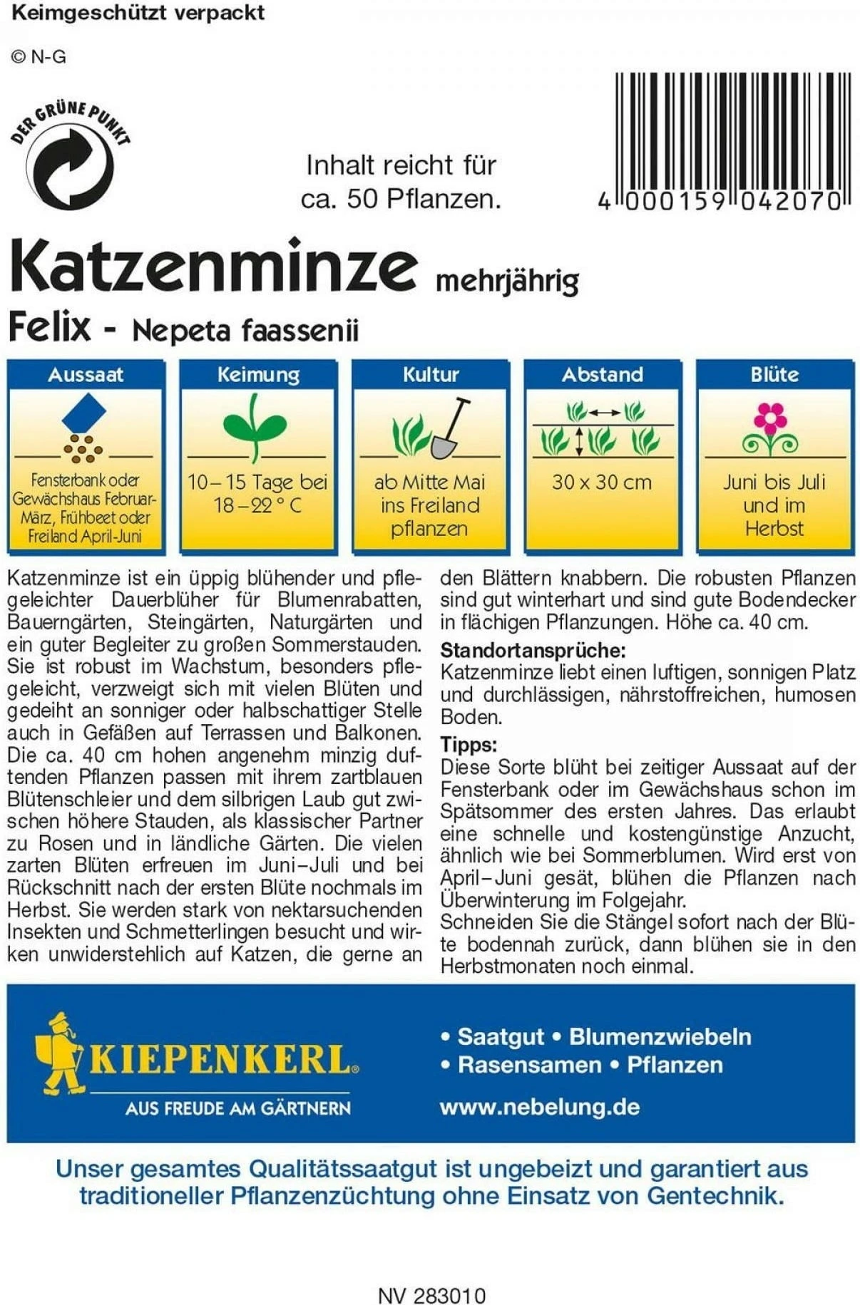 | Inhalt reicht für circa: | 30-50 Pflanzen |