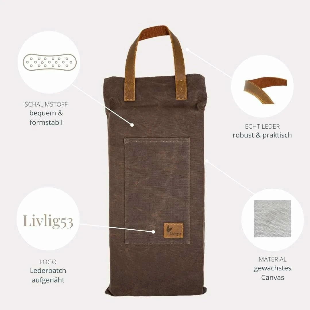 Dieser Kniepolster aus gewachstem Canvas ist ein unverzichtbarer Begleiter bei der Gartenarbeit, denn er ist nicht nur eine angenehm weiche Unterlage für deine Knie, sondern schützt diese auch vor Nässe sowie Verschmutzungen. So ausgerüstet kannst du wichtige Arbeiten im Garten jederzeit ebenso komfortabel wie stilvoll erledigen.