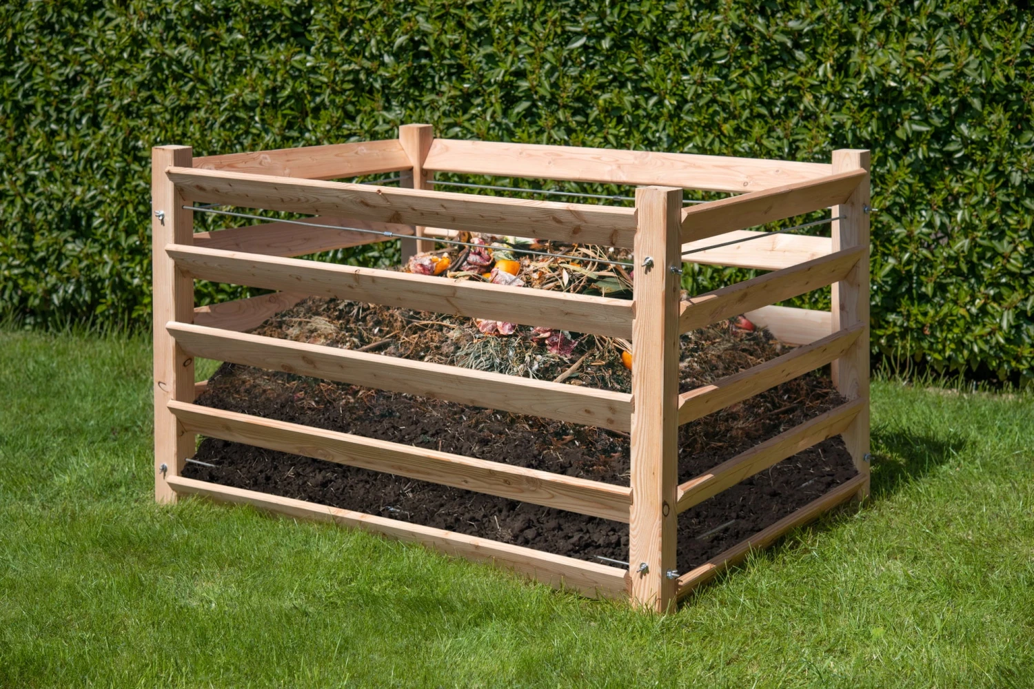 Ein Komposter ist nicht nur eine wunderbare Option, Grünschnitt und Bio-Abfälle loszuwerden, sondern ermöglicht es dir außerdem, fruchtbare Komposterde zu gewinnen. Dieses Modell ist ganz besonders gut dafür geeignet, denn dank genügend Abstand zwischen den Querlatten, wird eine optimale Belüftung sichergestellt. Diese lassen sich auch herausnehmen, um einfacher an die frische Komposterde zu gelangen. Das verwendete Lärchenholz stammt aus heimischen Wäldern und nachhaltiger Forstwirtschaft. Das Holz ist überaus witterungsbeständig und nimmt mit der Zeit eine edle graue Nuance an.