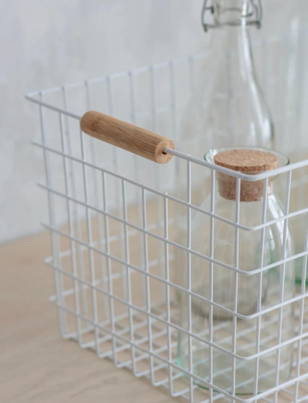 Offene Aufbewahrungsmöglichkeiten erlauben eine schnelle Sicht auf den Inhalt. Wer auf moderne und luftige Looks steht, wird von diesen fabelhaften Körben begeistert sein. Die helle Gestaltung verkörpert Weitläufigkeit und steht in tollem Kontrast zu den runden Griffen aus Bambus. Der perfekte Stauraum für Dekoratives und all jenes, das schnell gefunden werden möchte.
