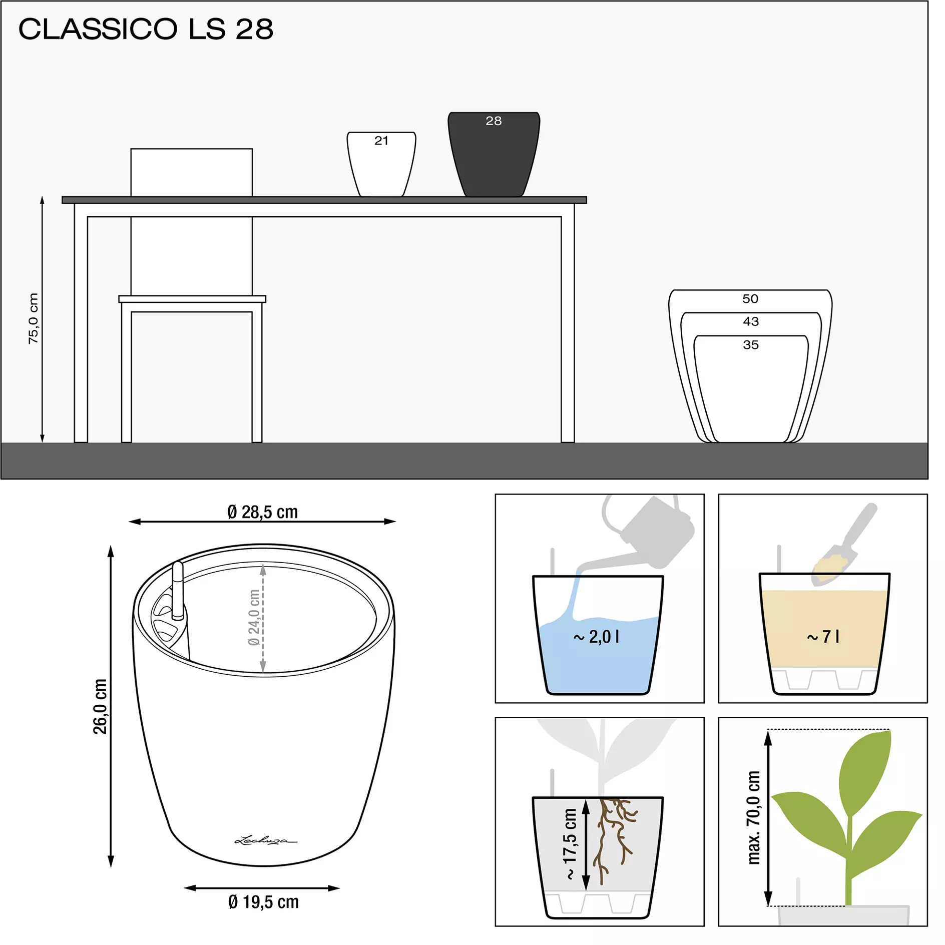 Das beliebte Pflanzgefäß „Classico Color“ von Lechuza gibt es jetzt auch mit wechselbarem Pflanzeinsatz für noch mehr Komfort beim Umpflanzen. Seine elegante Form, naturverbundene Farbtöne und die gewohnt hochwertige Lechuza-Qualität machen die Pflanzgefäße der „Classico“-Serie zu absoluten Lieblingsstücken, die in Design und Qualität gleichermaßen begeistern.