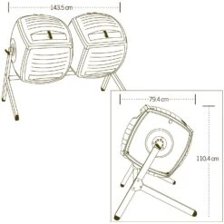 Im Inneren der beiden separat befüllbaren und daher individuell nutzbaren Trommeln wird dein Kompostgut optimal belüftet und gelockert, sodass der Kompostvorgang rasch voranschreitet. Das Fassungsvermögen von zweimal 190 Litern reicht aus, um wirklich alle organischen Abfälle aus Küche und Garten zu verwerten.