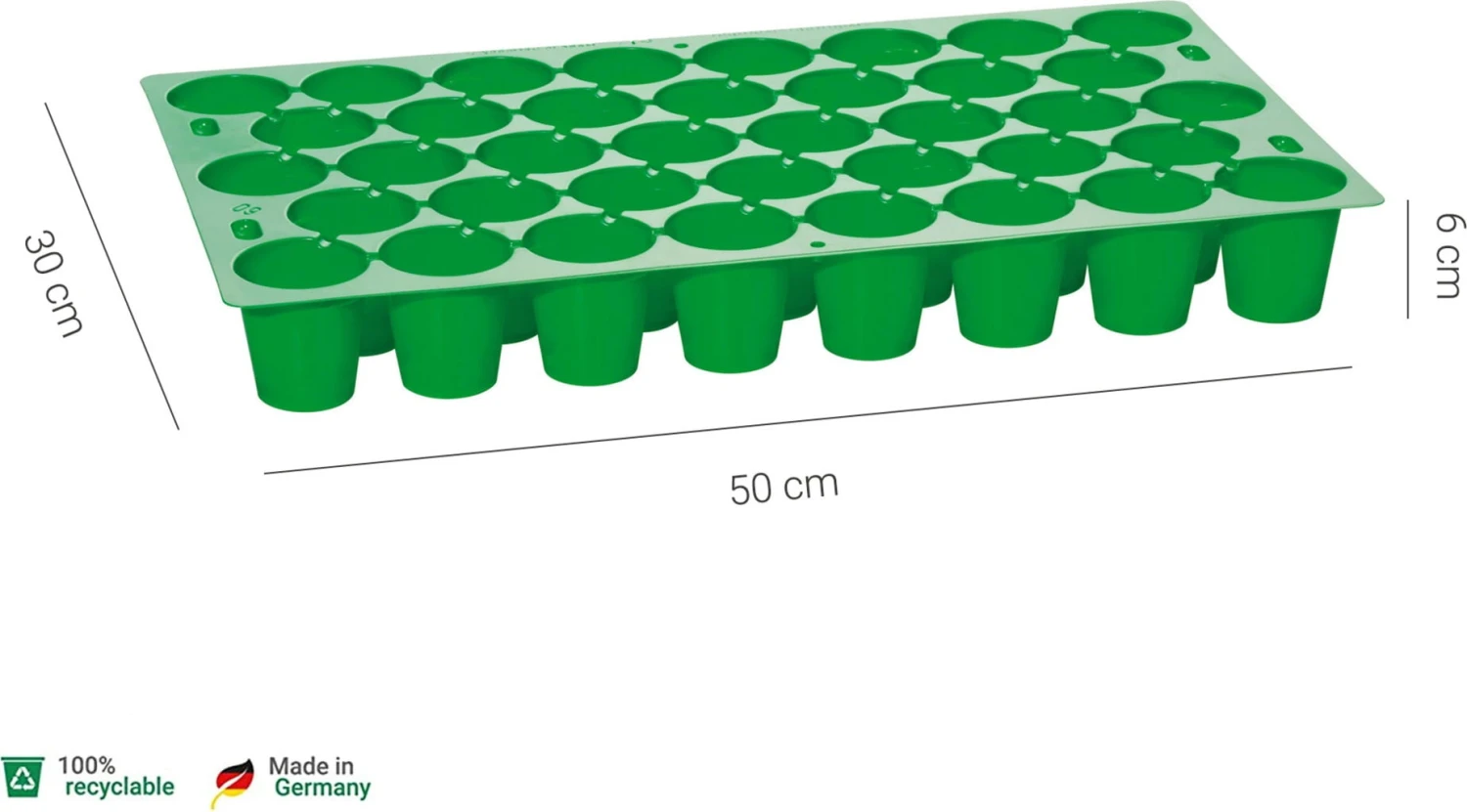 Die Multitopf-Platte mit den 38 Töpfen ist perfekt für die Aussaat und zum Pikieren kleiner Sämlinge geeignet. Das überschüssige Gießwasser kann durch die Löcher im Boden abfließen.