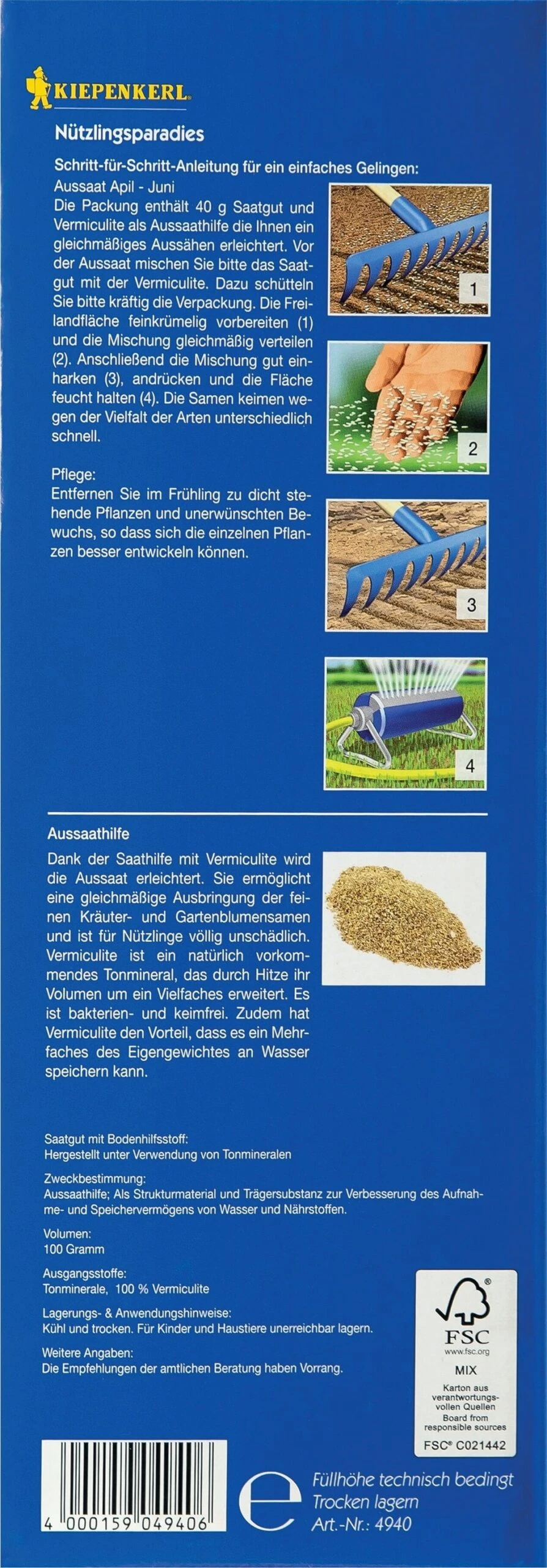 In dieser bunten Blumenmischung finden viele Nützlinge ihre Nahrung, denn sie sorgt für reichlich Nektar, die Nahrungsgrundlage für Hummeln, Bienen und Falter. Wenn Sie noch ein sonniges Plätzchen frei haben, dann helfen Sie mit dieser Blumenmischung unseren einheimischen Nützlinge zu überleben. Bereichern Sie Ihren Garten und das heimische Ökosystem und erfreuen Sie sich der bunten Schönheit.