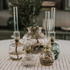 Petroleumlampe „Majken“ bezaubert mit ihrer zarten Optik und eignet sich nicht nur als alternative Lichtquelle, sondern auch als außergewöhnliches Wohnaccessoire. Die Kombination aus Glas und Messing verleiht ihr eine elegante Note.