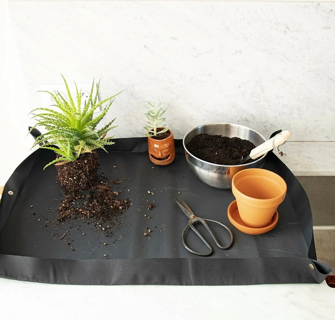 Diese Pflanzmatte sieht nicht nur unwiderstehlich chic aus, sie ist auch ein besonders praktisches Zubehör für passionierte Hobby-Gärtner. Du kannst sie auf so gut wie jeder Oberfläche nutzen und auf ihr Umtopfen, Samen einpflanzen, Vermehren, Beschneiden und Besprühen.