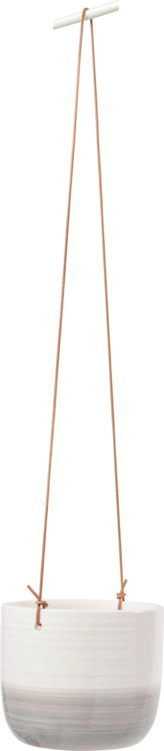 Dieser besondere Hängeblumentopf sieht mit seinem Wellenmuster aus, als würde er direkt vom Töpfer kommen. Die Glasur in den Farben Grau und Weiß unterstreicht die individuelle Formgebung dieses außergewöhnlichen Topfes perfekt und macht ihn zu einem echten Hingucker. So können Sie Ihr Zuhause auf einfache und ebenso eindrucksvolle Weise mit Pflanzen dekorieren.