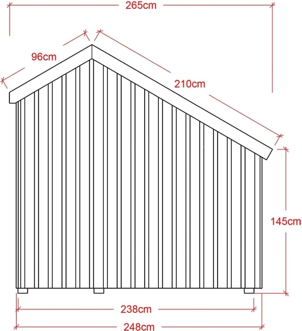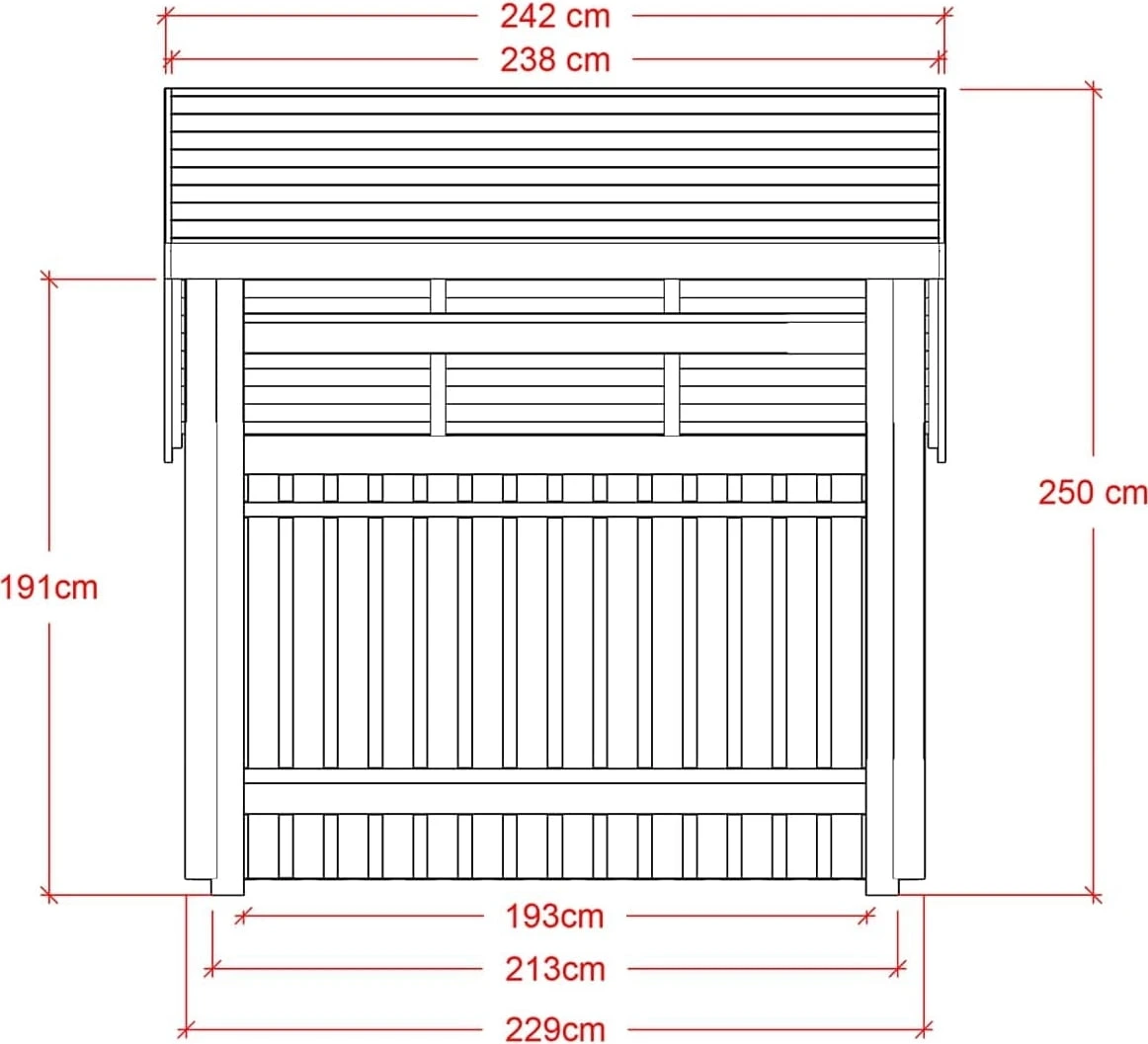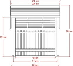 | Außen (L/B/H): | 248 x 229 x 145/202/250 cm | 6,5 m² |