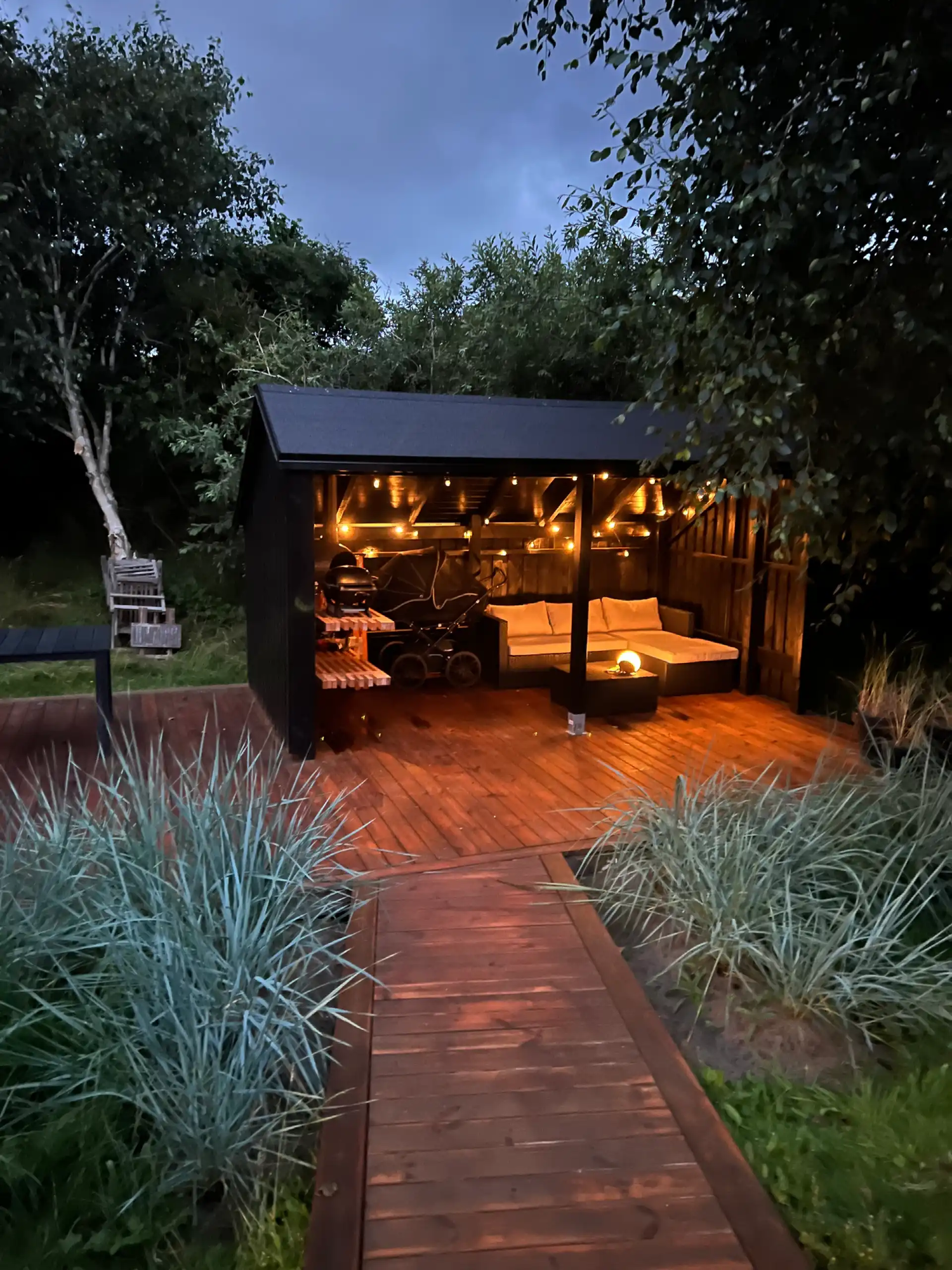 Die gute alte Gartenlaube – modern und skandinavisch-gemütlich interpretiert. Das geräumige Gartenhaus lässt sich vielfältig nutzen und bietet entweder reichlich Platz für Geräte, Gartenaccessoires, Fahrräder & Co. oder wird zum einzigartig gemütlichen Freiluft-Wohnzimmer für die ganze Familie. Individuell dekoriert und ausgestattet mit Decken, Kissen & Co. wird’s gleich noch gemütlicher. Egal ob beim sommerlichen Lagerfeuer, Sterne beobachten oder romantischem Kuscheln bei prasselndem Regen – einzigartige Wohlfühlmomente inmitten der Natur sind garantiert.
