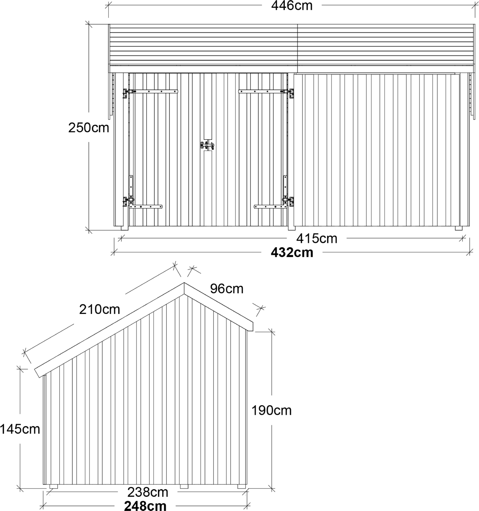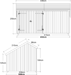 Abmessungen (L/B/H): 432 x 248 x 250/145/202 cm – 10,5 m²
