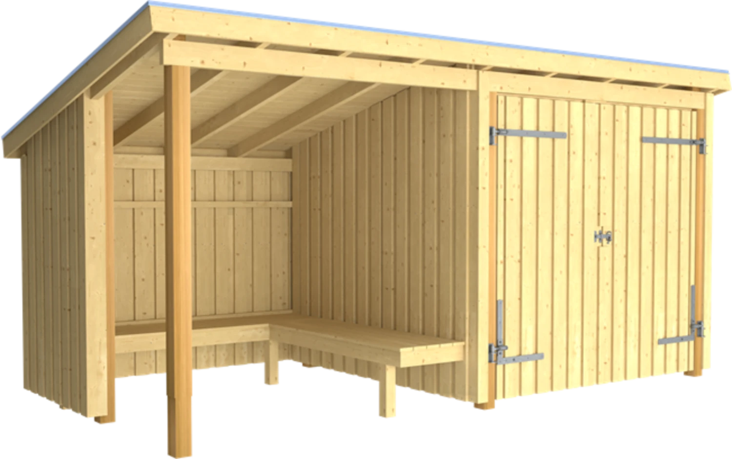 Während sich der geschlossene Teil perfekt zur Geräteaufbewahrung sowie als Fahrradunterstand eignet, lädt der offene Bereich mit seiner umlaufenden Sitzbank zum Verweilen und Relaxen ein. So wird die nächste Grillfeier zum echten Highlight und du kannst zusammen mit deinen Liebsten unvergessliche Momenten erleben – egal, bei welchem Wetter.