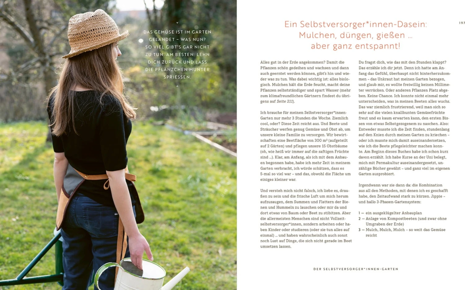 Die Autorin dieses Buches Marie Diederich lässt dich in diesem Buch an ihren Erfahrungen als Selbstversorgerin teilhaben und zeigt dir anhand praxisnaher Schritt-für-Schritt-Anleitungen, wie auch du dein eigenes Gemüse züchten, Brot backen, Hühner sowie andere Tiere halten und deine Ernte haltbar machen kannst. Dabei lernst du ihre eigene, selbst entwickelte Gärtnermethode ebenso kennen wie verschiedene andere Herangehensweisen an das Thema Selbstversorgung.