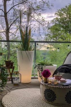 Die „Shining Pots“ von 8seasons design sind Designer-Pflanztopf und leuchtendes Deko-Highlight in einem. Egal ob im Wohnbereich, auf der Terrasse oder im Garten – die beleuchteten Pflanzgefäße machen einfach überall eine gute Figur. Klassische Form, zeitloses Design und hochwertige Material- und Verarbeitungsqualität machen sie zu absoluten Lieblingsstücken, die für ein wunderbar stimmungsvolles Ambiente sorgen und gleichzeitig deine Pflanzen gekonnt in Szene setzen. Besonders praktisch: Ein intelligentes Ablaufsystem sorgt auf Wunsch dafür, dass überschüssiges Gießwasser nach unten abfließen kann.