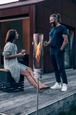 Die SPIN Gartenfackel in zeitlosem Silber sorgt mit ihrem faszinierenden Flammenspiel für ein stimmungsvolles Ambiente. Das preisgekrönte Design, die hochwertigste Verarbeitung sowie die sichere und einfache Befeuerung mit Bio-Ethanol machen es zu eine Must-Have für jede Gartenparty.