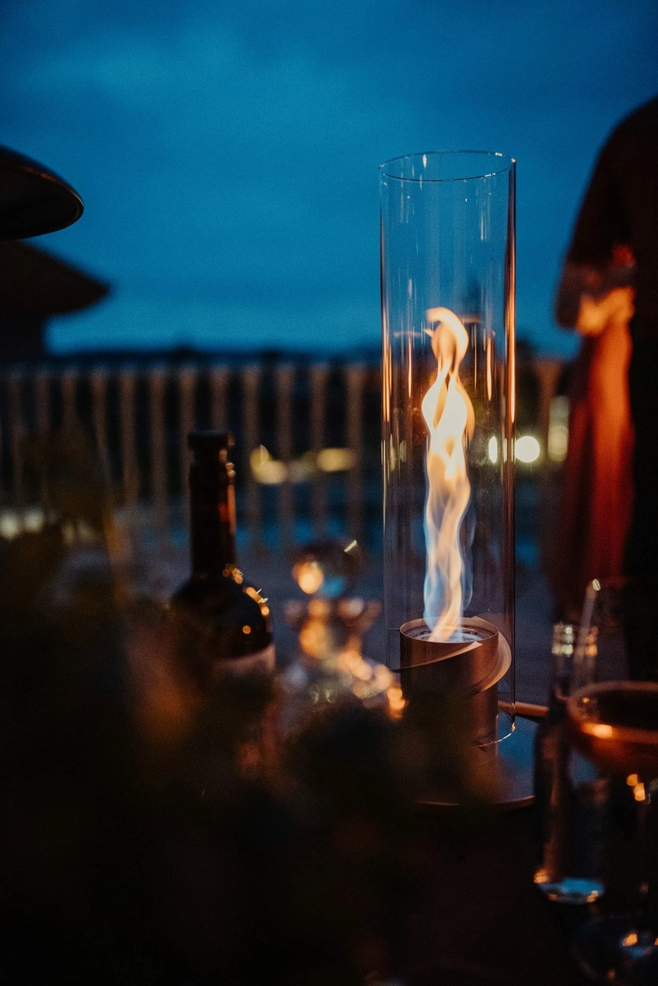 Der hinreißende Flammenwirbel gelingt ganz einfach: In den Fuß wird eine Dose mit Bio-Ethanol eingesetzt, dieser entzündet und der Zylinder aus edlem Borosilicatglas aufgesetzt. Schon beginnt sich die Flamme zu drehen und zaubert für bis zu 80 Minuten eine angenehme Wärme und eine harmonische Atmosphäre.