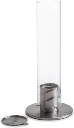 Die Befeuerung gelingt denkbar einfach: Bio-Ethanol-Dose in den Fuß einsetzen, entzünden und Glaszylinder aufsetzen. Schon rotiert die Flamme und sorgt bis zu 60 Minuten für ein angenehm warmes und gemütliches Wohlfühl-Ambiente.