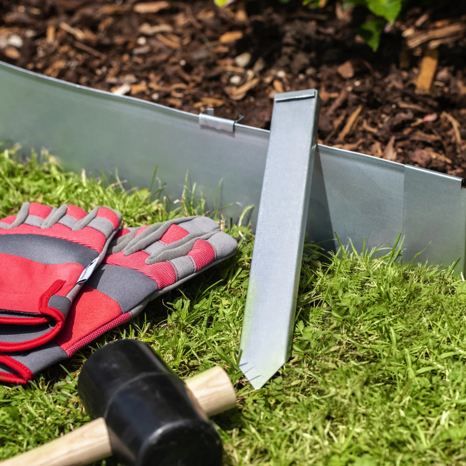 - Erleichtert die exakte Ausrichtung der Rasenkante während der Montage.