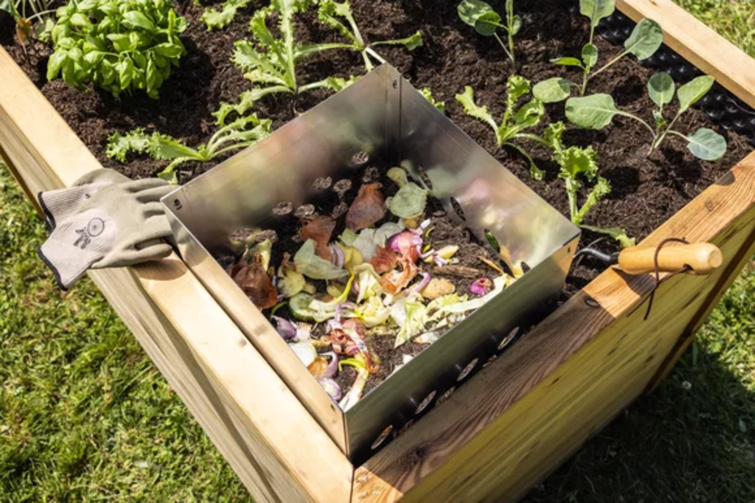 Expertentipp: Für eine herkömmliche Kompostierung an der Luft empfehlen wir, den Hochbeetkomposter lediglich bis zur obersten Reihe der ovalen Lüftungslöcher einzubauen. Dadurch wird eine optimale Belüftung des Komposts gewährleistet. Bei vollständigem Einbau entsteht hingegen eine effektive Erdkompostierung.